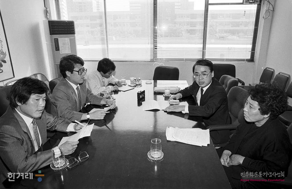 - 1988년 10월 7일 참혹한 삼청교육의 실상 일부가 뒤늦게 밝혀지면서 진상규명과 책임자 처벌의 여론이 높아지는 가운데 관계자들의 한겨레에서 긴급 좌담을 가졌다. 정인수 삼청교육대 진상규명 전국투쟁위 공동의장, 류영근 삼청교육대 진상규명 전국투쟁위 공동의장, 전영순 삼청교육대 진상규명 전국투쟁위 부의장.