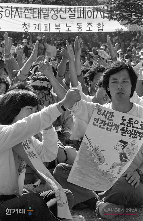 - 1988년 10월 9일. 노동운동단체 와 노동조합이 공동개최한 노동법개정을 촉구하는 대규모 등반결의대회가 서울 북한산을 비롯해 경남 창녕의 화왕산 전북 완주의 대둔산 등 3곳에서 1만여명의 노동자가 참여한 가운데 서울 북한의 북한산장앞에 모인 경인지역 5천여 노동자들이 ‘노동3권 쟁취하자’는 구호를 외치고 있다.