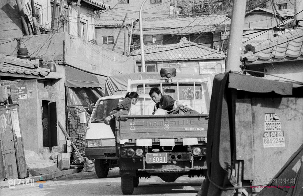 - 1988년 5월 15일 달동네의 집주인은 절반 이상이 재개발된 뒤 전매이익을 노리는 복부인과 투기꾼들. 따라서 이곳 주민은 자기집에서 살고 있는 몇 안되는 가옥주들을 빼면 40~50%가 세입자들이다. 전세 또는 4~5만원의 삭월세를 든 세입자들은 그 동네가 재개발지구로 책정되면 가장 타격을 입는다. 가옥주가 아니라서 아파트 입주권도 안 나오고 아무 보상도 없이 지금까지 닦아온 삶의 터전을 떠나야 하기 때문이다. 사진은 서울 봉천동일대 달동네