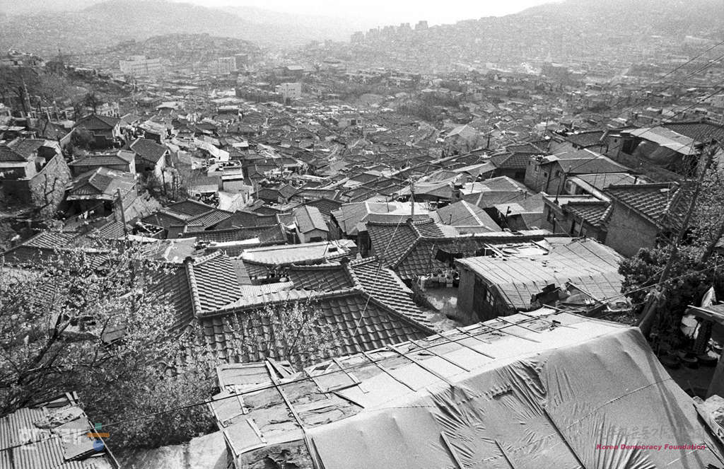 - 1988년 5월 15일 달동네의 집주인은 절반 이상이 재개발된 뒤 전매이익을 노리는 복부인과 투기꾼들. 따라서 이곳 주민은 자기집에서 살고 있는 몇 안되는 가옥주들을 빼면 40~50%가 세입자들이다. 전세 또는 4~5만원의 삭월세를 든 세입자들은 그 동네가 재개발지구로 책정되면 가장 타격을 입는다. 가옥주가 아니라서 아파트 입주권도 안 나오고 아무 보상도 없이 지금까지 닦아온 삶의 터전을 떠나야 하기 때문이다. 사진은 서울 봉천동일대 달동네