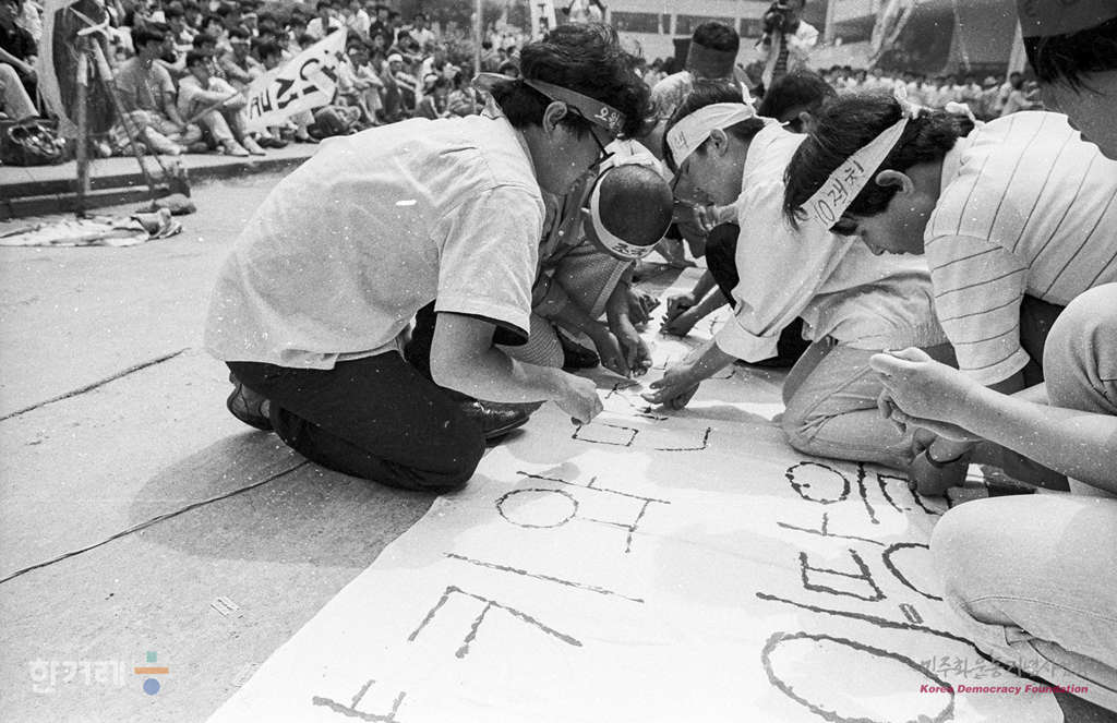 - 1988년 6월 7일 서울대 학생들이 교내 아크로폴리스광장에서 임진각 방문 저지 규탄대회 및 박래전열사 추모대회를 갖고 동맹휴업 및 6.10남북학생회담 강행을 결의하고 있다.
