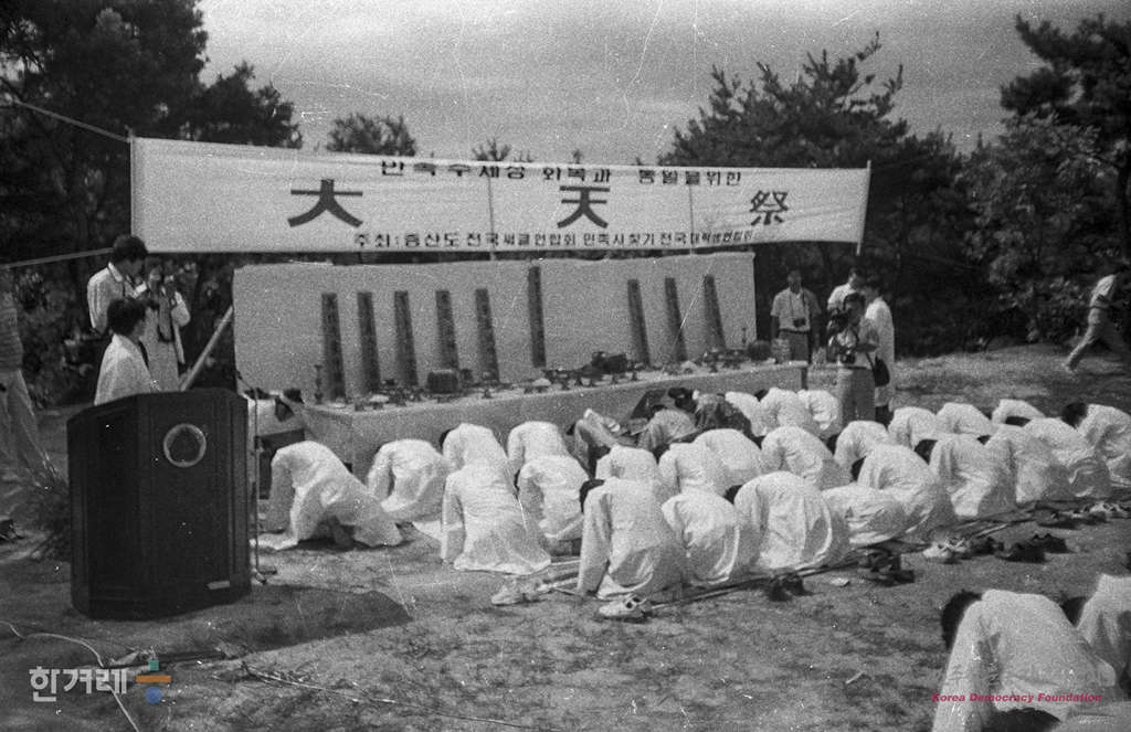 - 1988년 7월 27일 우리 민족 고유의 제턴의식인 천제가 경기도 강화군 마니산 중턱에서 열려 증산도 대학생들에 의해 재현되고 있다.