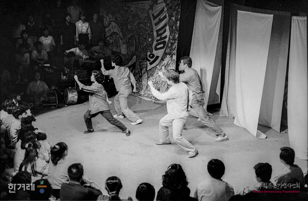 - 1988년 9월 26일 극단현장이 서울 예술극장 한마당에서 박노해씨의 시집 <노동의 새벽>을 바탕으로 연출가 박인배씨가 재구성한 노래극을 공연하고 있다.