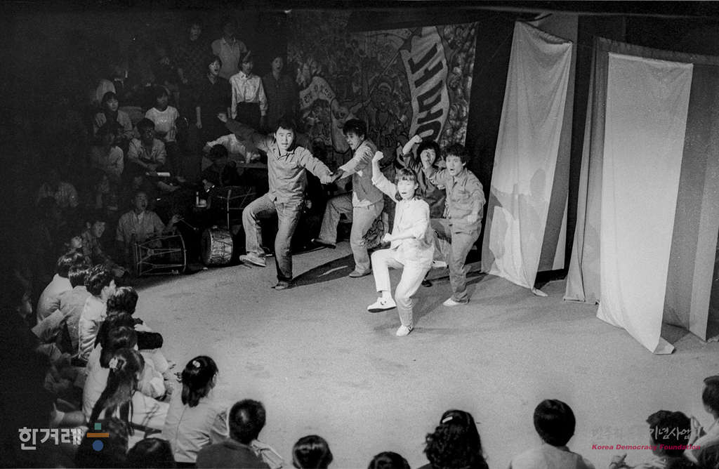 - 1988년 9월 26일 극단현장이 서울 예술극장 한마당에서 박노해씨의 시집 <노동의 새벽>을 바탕으로 연출가 박인배씨가 재구성한 노래극을 공연하고 있다.