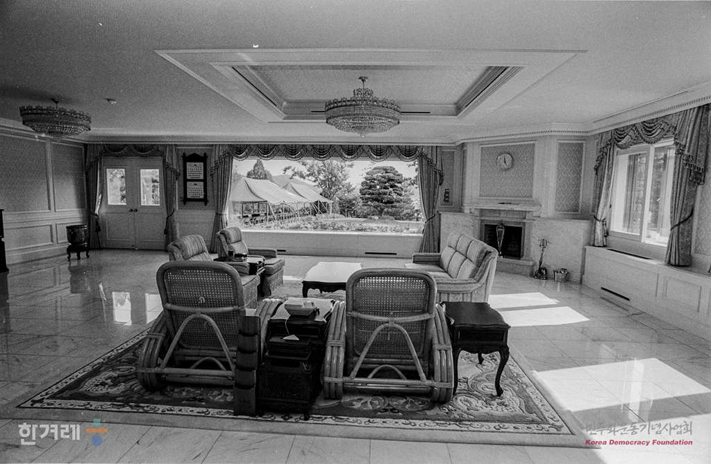 - 1988년 9월1일 국회 5공비리특위 위원들이 제5공화국 당시 건설 문제가 된 대통령 별장으로 사용된 청남대 실내를 돌아보며 현장조사를 벌이고 있다.