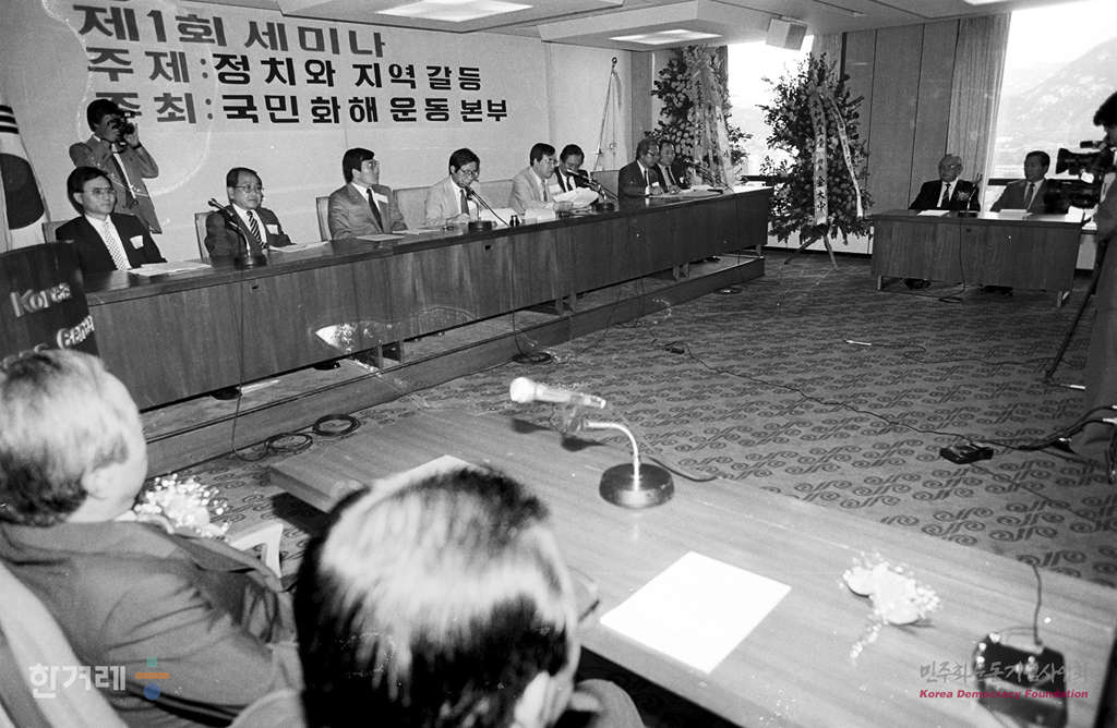- 1988년 9월 6일 국민화해운동본부에서 개최하는 정치와 지역갈등 세미나가 서울 프레스센터에서 열려 열띤 토론을 하고 있다.
