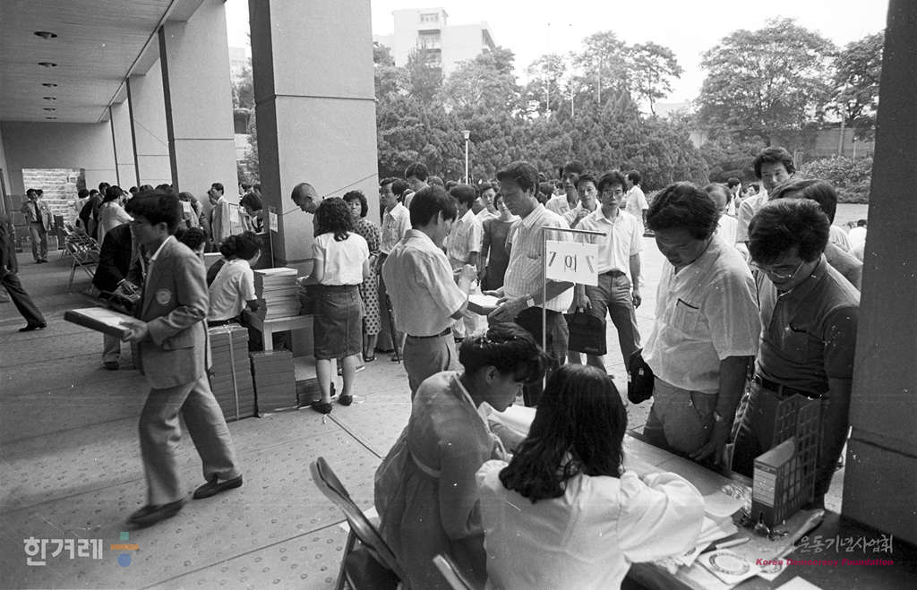 - 1988년 9월 10일 오후2시30분 한겨레신문 임시주주총회가 서울 중국 정동 이화여고 류관순기념관에서 열려 2천 5백여명의 주주들이 참석한 가운데 성황리에 열리고 있다.