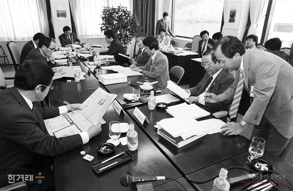 - 1988년 9월 14일. 일해재단에 대한 국회 5공특위 문서검증반은 일해재단 현장조사에서 재단쪽에서 제출한 서류의 변조부분을 돋보기로 살펴보고 있다.