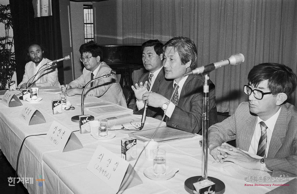 - 1988년 9월 20일. 학문 사상과 출판의 자유를 위한 공청회가 학국산업사회연구회를 비롯한 11개 학술단체와 한국출판문화운동협의회가 주최하는 학문 사상 출판 자유를 위한 공청회가 서울 명동 YMCA대강당에서 열려 참석자들이 열띤 토론을 하고 있다.