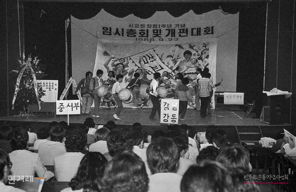 - 1988년 9월 22일. 1천여명의 서울지역 교사들이 서울 고려대에서 서교협 창립1주년기념 임시총회 및 개편대회를 하고 있다. 이날 참석한 교사들은 직선으로 제 2대 회장으로 이부영(42 송곡여고)교사를 회장으로 선출했다.