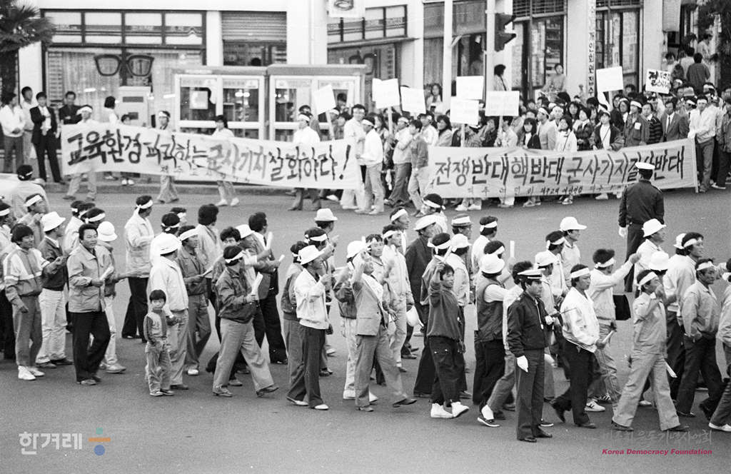 - 1988년 10월 30일 제주 송악산 지역 대정읍 주민을 비롯한 민주쟁취국민운동 제주본부, 제주교사협의회, 제주대 등 시민과 각 단체회원, 학생 2천여명이 제주북국민학교에서 ‘송악산 군사기지 설치 결사반대 도민대책위원회 결성 및 규탄대회’를 하고 있다.