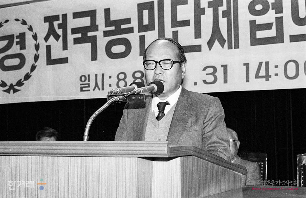 - 1988년 10월 31일 오후2시 농민단체들의 범 농민적 협의기구인 전국농민단체협의회(전농협)이 서울 동부이촌동 농업기술진흥관에서 결성돼 언론인 임재경씨가 격려사를 하고 있다.