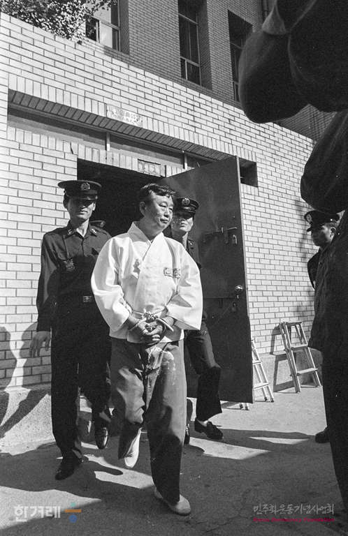 - 1988년 10월 18일 ㈜한양으로부터 뇌물을 받은 혐의로 구속기소돼 징역 5년 추징금 8천만원을 선고받은 염보현 전 서울시장이 대법정을 나서고 있다.