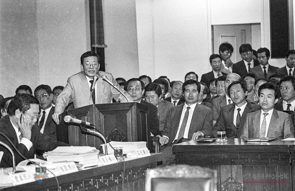 - 1988년 10월 19일 남영동 치안본부 대공수사단에서 받은 고문에 관한 김근태 전민청련 의장을 비롯해 관계자들이 국회 내무위 내무부 감사에 증인으로 출석해 증언을 하고 있다.
