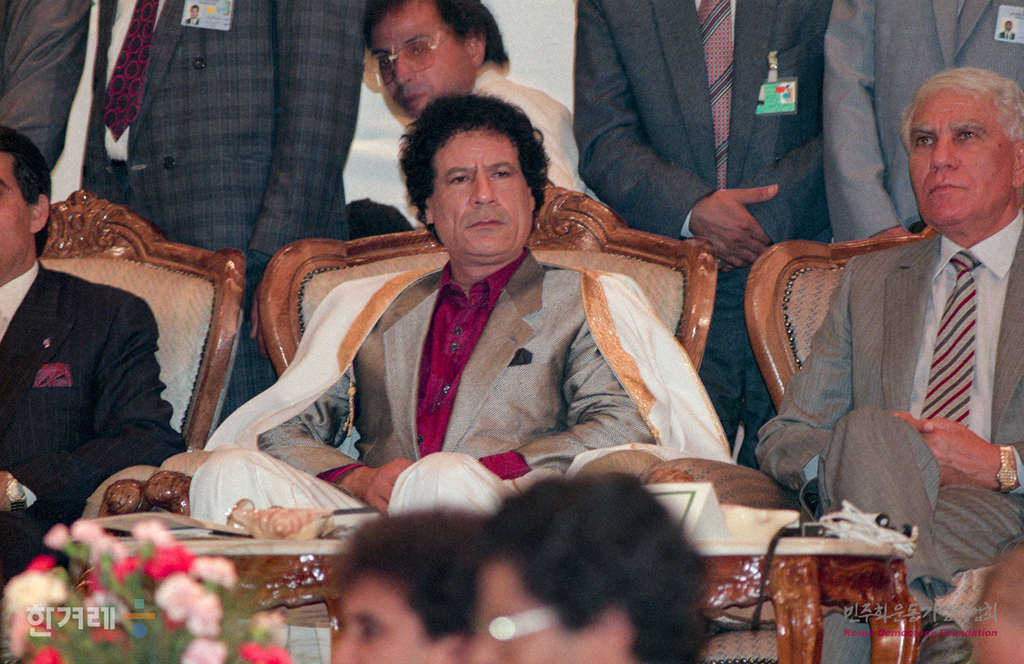 - 1990년 9월 1일 무하마드 카다피 대통령이 이끈 리비아혁명 20돌 기념식이 아랍 아프리카 아시아 등 제3세게 각국 공식사절단이 대거 참석한 가운데 수도 트리폴리에서 성대히 거행되고 있다.