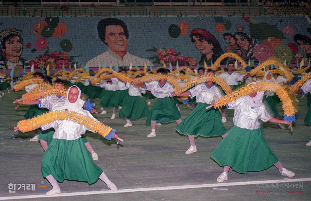 - 1990년 9월 1일 무하마드 카다피 대통령이 이끈 리비아혁명 20돌 기념식이 아랍 아프리카 아시아 등 제3세게 각국 공식사절단이 대거 참석한 가운데 수도 트리폴리에서 성대히 거행되고 있다.