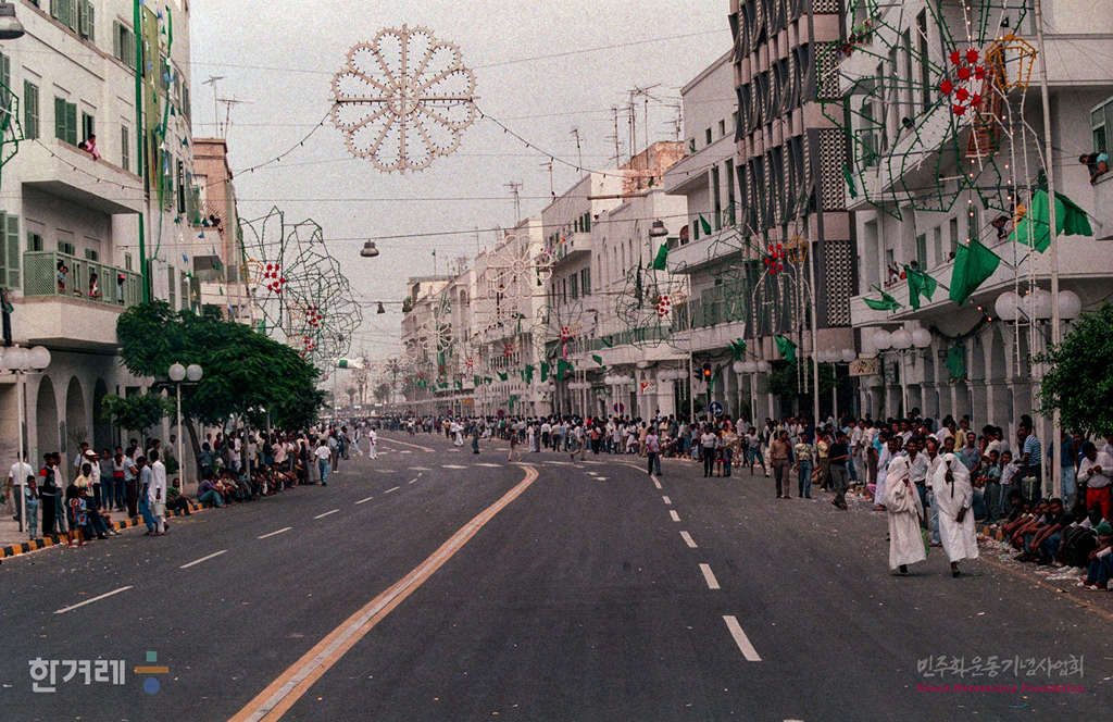 - 1990년 9월 1일 무하마드 카다피 대통령이 이끈 리비아혁명 20돌 기념식이 아랍 아프리카 아시아 등 제3세게 각국 공식사절단이 대거 참석한 가운데 수도 트리폴리에서 성대히 거행되고 있다.