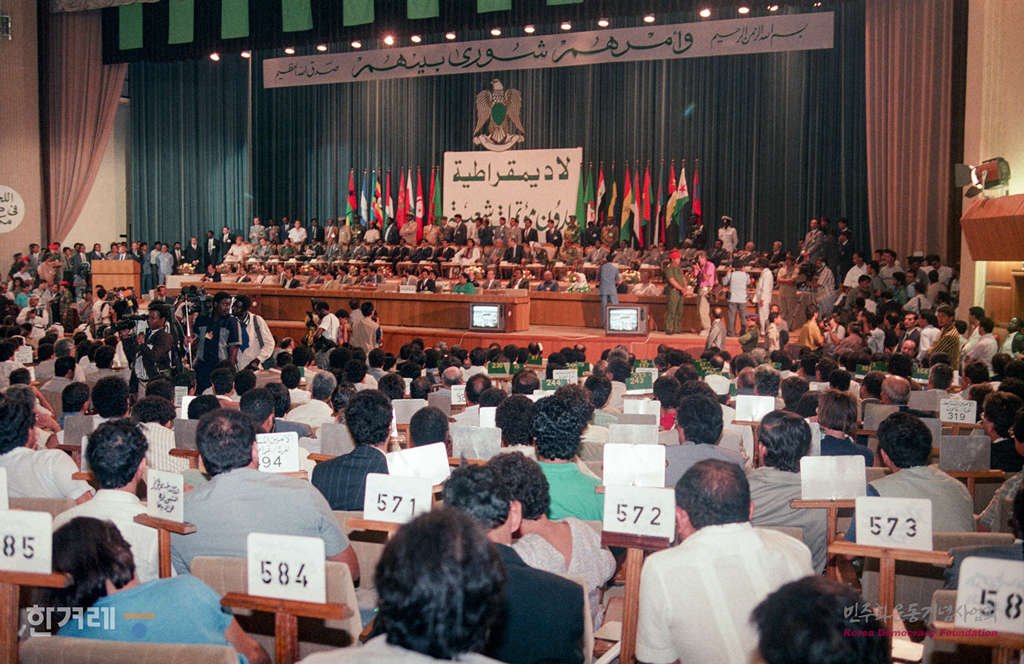 - 1990년 9월 1일 무하마드 카다피 대통령이 이끈 리비아혁명 20돌 기념식이 아랍 아프리카 아시아 등 제3세게 각국 공식사절단이 대거 참석한 가운데 수도 트리폴리에서 성대히 거행되고 있다.