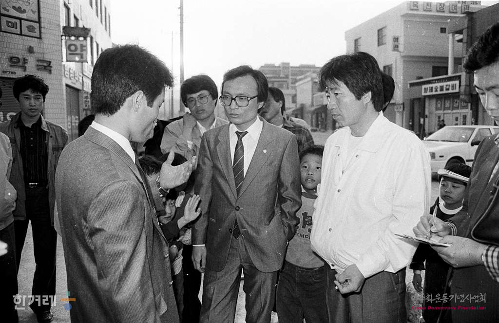 - 1989년 4월 10일 공권력 투입 11일째을 맞고 있는 울산 현지에 이해찬의원을 비롯한 국회노동위 현대중공업 사태 진상조사단이 노동자와 현지 주민, 경찰을 만나 사정을 듣고 있다. 국회 진상조사단은 경찰 지도부, 회사임원진, 현 노조집행부 등을 차례로 만나 사태수습을 위한 중재활동을 펼쳤으나 회사의 기존 노조거부와 경찰의 검거 고집으로 중계노력이 한계에 부닥쳤다.