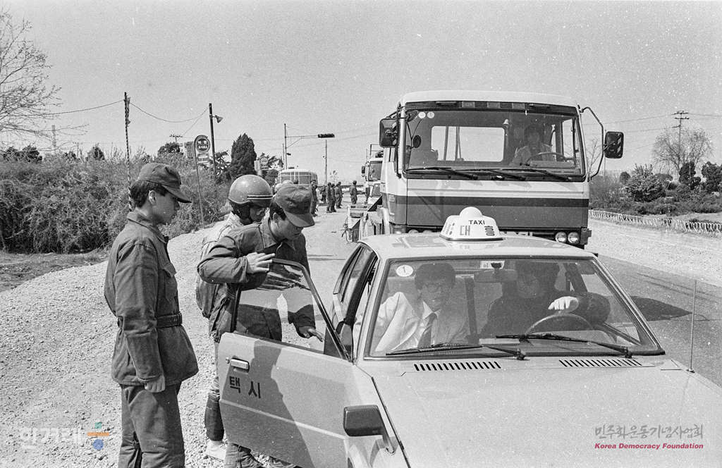 - 1989년 4월 11일 전대협 산하 현대파업 승리를 위한 울산지원 대책위를 비롯한 학생들과 노동자들이 현대중공업 파업과 공권력 개입규탄 시위가 예상되자 현대중공업으로 향하는 길목을 경찰들이 막고 검문검색을 하고 있다.