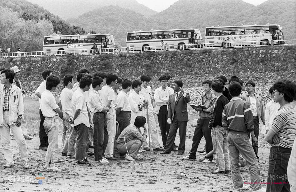 - 1989년 6월 2일 시민 학생 시위대와 경찰의 한밤중 충돌사태가 연 나흘째 계속되는 가운데 이철규군 변사사건 진상조사특위 위원들이 이씨가 사체로 발견된 광주 제 4수원지에서 이씨를 최초 발견한 최왕균씨 등 관계자들을 불러 현장조사를 하고 있다.