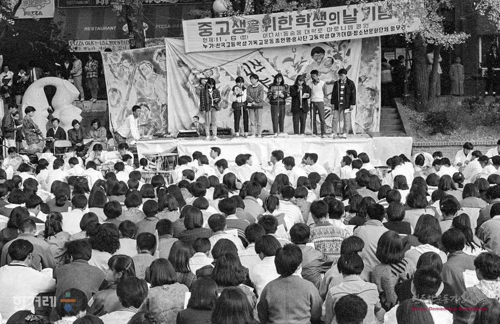 - 1988년 11월 6일 서울시내 중 고생 6백여 명은 서울 동숭동 대학로 흥사단 본부앞에서 중고생을 위한 학생의 날 기념제를 갖고 입시위지교육 철폐와 학생자율활동 보장 및 사학비리 척결 등을 주장하고 있다.