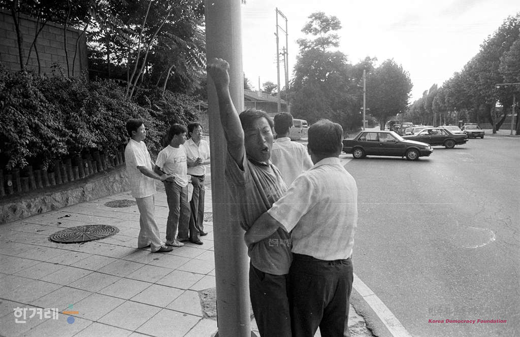 - 1988년 7월 27일 휴정협정 35주년을 맞아 서총련소속 서울시내 10개대생 34명이 서울 용산구 이태원동 한미연합사앞에서 시위를 벌이다 경찰에 모두 연행되고 있다.