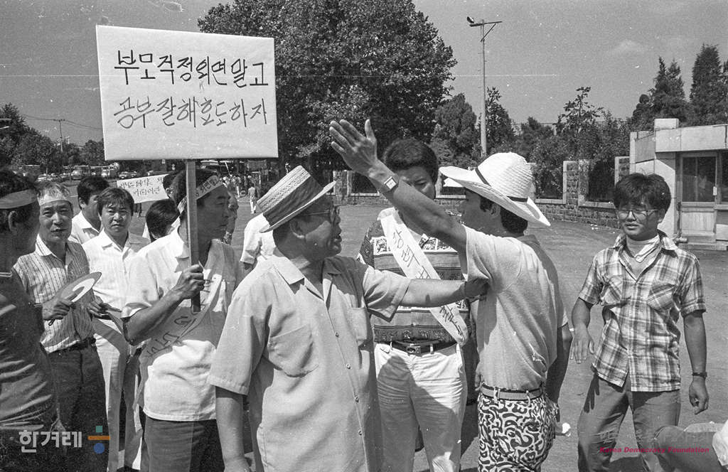 - 1988년 8월 13일 오전 11시 서울 시대문구 신촌지역 주민과 창천동 노인회 소속 노인 등 시민 3백여 명이 서울 연세대 정문 앞에서 8.15남북학생회담 반대시위를 벌이고 있다.