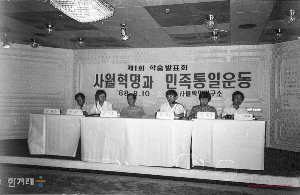 - 1988년 8월 10일 오후 3시 사월혁명연구소가 문을 연지 두달만에 <사월혁명과 민족통일운동>이란 주제를 가지고 서울 변호사회관 강당에서 제 1회 학술대회를 열고 있다.