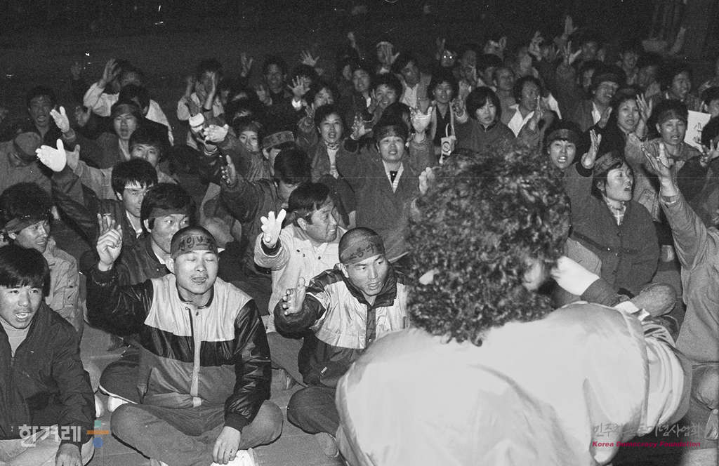 - 1988년 11월 1일 오후 7시 서울 영등포구 양평동 동성인쇄 회사 앞마당 모여 동성인쇄 노조원들이 ‘직장폐쇄 철회 및 노조사수 결의대회’를 하고 있다.