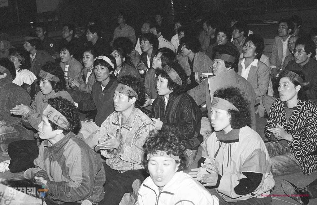 - 1988년 11월 1일 오후 7시 서울 영등포구 양평동 동성인쇄 회사 앞마당 모여 동성인쇄 노조원들이 ‘직장폐쇄 철회 및 노조사수 결의대회’를 하고 있다.