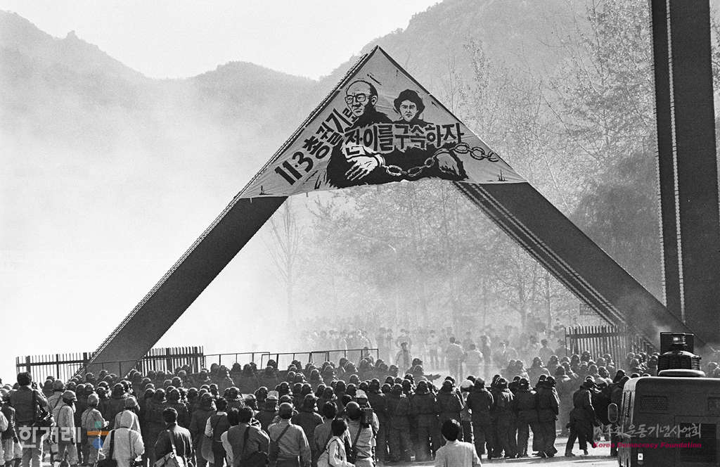 - 1988년 11월 2일 전두환 이순자 구속처벌을 위한 학생투쟁연합을 결성한 각 대학들이 체포결사대를 조직하는 가운데 서울대에서 11월 3일 전이부부 구속을 요구하는 대형그림이 정문앞에 내걸렸다. 또한 교내 아크로폴리스광장에서 11월 3일 학생의날 연합집회를 앞두고 결성된 체포결사대 학생들이 집회를 갖고 있다.