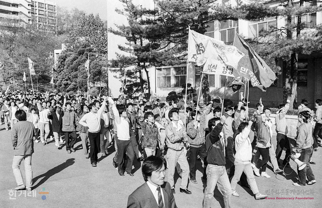 - 1988년 11월 2일 전두환 이순자 구속처벌을 위한 학생투쟁연합을 결성한 각 대학들이 체포결사대를 조직하는 가운데 서울 건국대에서 결성된 체포결사대 학생들이 집회를 갖고 있다.