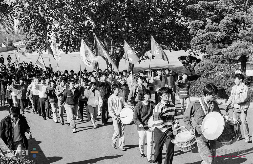 - 1988년 11월 2일 전두환 이순자 구속처벌을 위한 학생투쟁연합을 결성한 각 대학들이 체포결사대를 조직하는 가운데 서울 건국대에서 결성된 체포결사대 학생들이 집회를 갖고 있다.