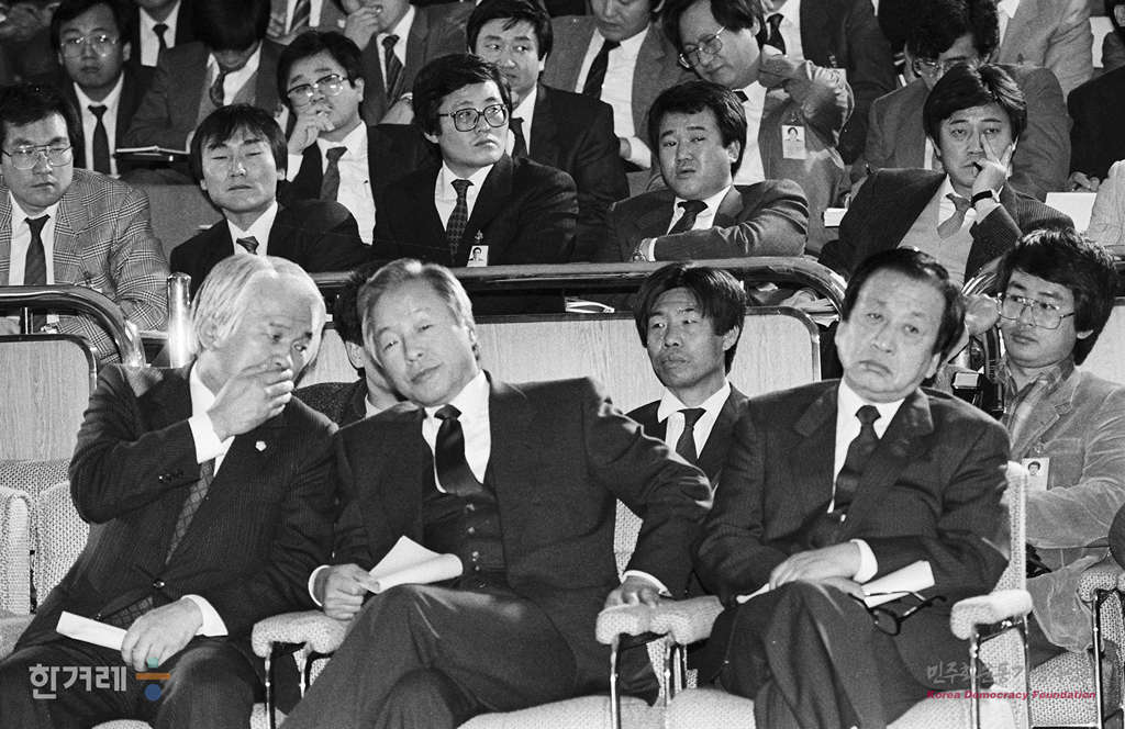 - 1988년 11월 3일 국회사상 처음으로 국회 일해재단 비리관련 청문회가 열려 각 증인에 대해 민정, 평민, 통일, 공화당이 한 사람씩의 대표신문을 한뒤 다른 의원들이 간단한 보충 질문을 하는 형식으로 진행하고 있다.