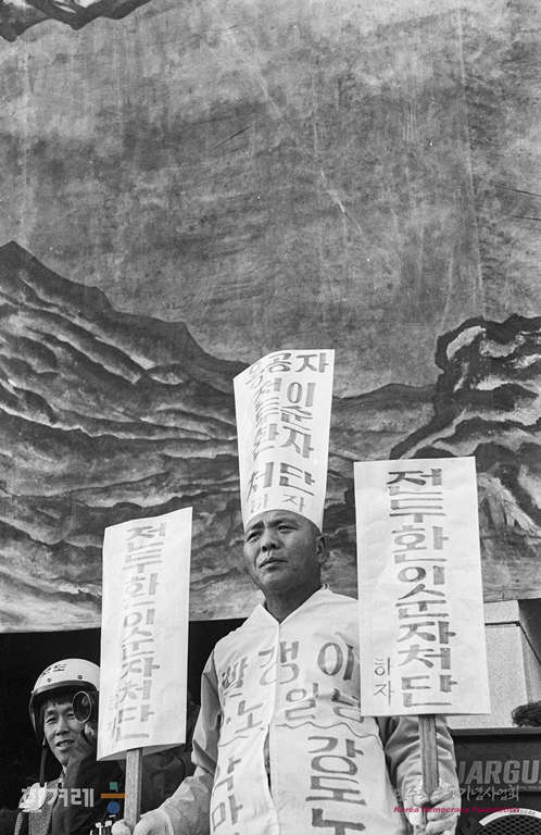 - 생산자 및 기증자가 ‘박용수’인 사진의 사용은 구매신청을 클릭하여 직접 사진 구매 신청을 하실 수 있습니다. 생산자 및 기증자가 ‘경향신문사’인 사진의 사용은 경향신문사 담당자(02-3701-1635)를 통해 구매하실 수 있습니다. 그 외의 생산자 및 기증자는 민주화운동기념사업회 사료관 담당자( hyunchaek@kdemo.or.kr / 02-6440-8961 )에 문의바랍니다.