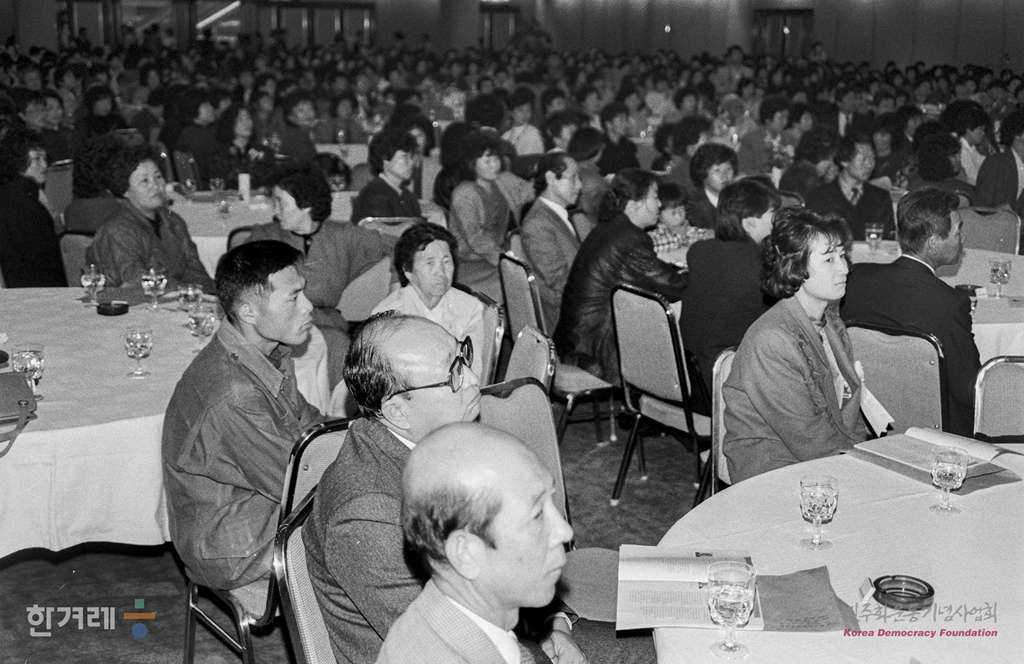 - 1988년 11월 5일 진보적 학술단체들의 모임인 학술단체협의회가 이화여대 경영관홀에서 학계원로 및 회원들이 참석한 가운데 창립대회를 하고 있다.