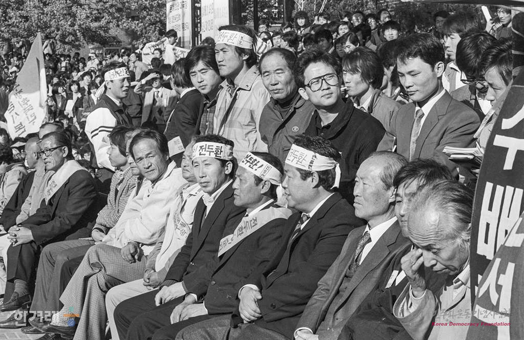 - 1988년 11월 5일 민통련을 비롯한 15개 재야단체로 구성된 광주학살 5공비리 주범 전두환 이순자 구속 처벌을 위한 투쟁본부 등 20개 사회단체 주최로 서울 대학로에서 열린 시민궐기대회는 지난해 대통령 선거 이후 최대 인파인 1만5천여 명의 시민 학생들이 참가했다.