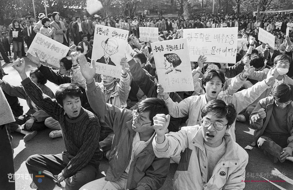 - 1988년 11월 5일 민통련을 비롯한 15개 재야단체로 구성된 광주학살 5공비리 주범 전두환 이순자 구속 처벌을 위한 투쟁본부 등 20개 사회단체 주최로 서울 대학로에서 열린 시민궐기대회는 지난해 대통령 선거 이후 최대 인파인 1만5천여 명의 시민 학생들이 참가했다.