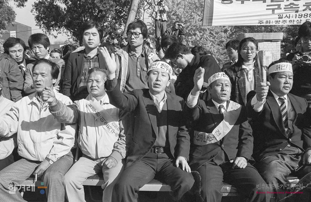 - 1988년 11월 5일 민통련을 비롯한 15개 재야단체로 구성된 광주학살 5공비리 주범 전두환 이순자 구속 처벌을 위한 투쟁본부 등 20개 사회단체 주최로 서울 대학로에서 열린 시민궐기대회는 지난해 대통령 선거 이후 최대 인파인 1만5천여 명의 시민 학생들이 참가했다.