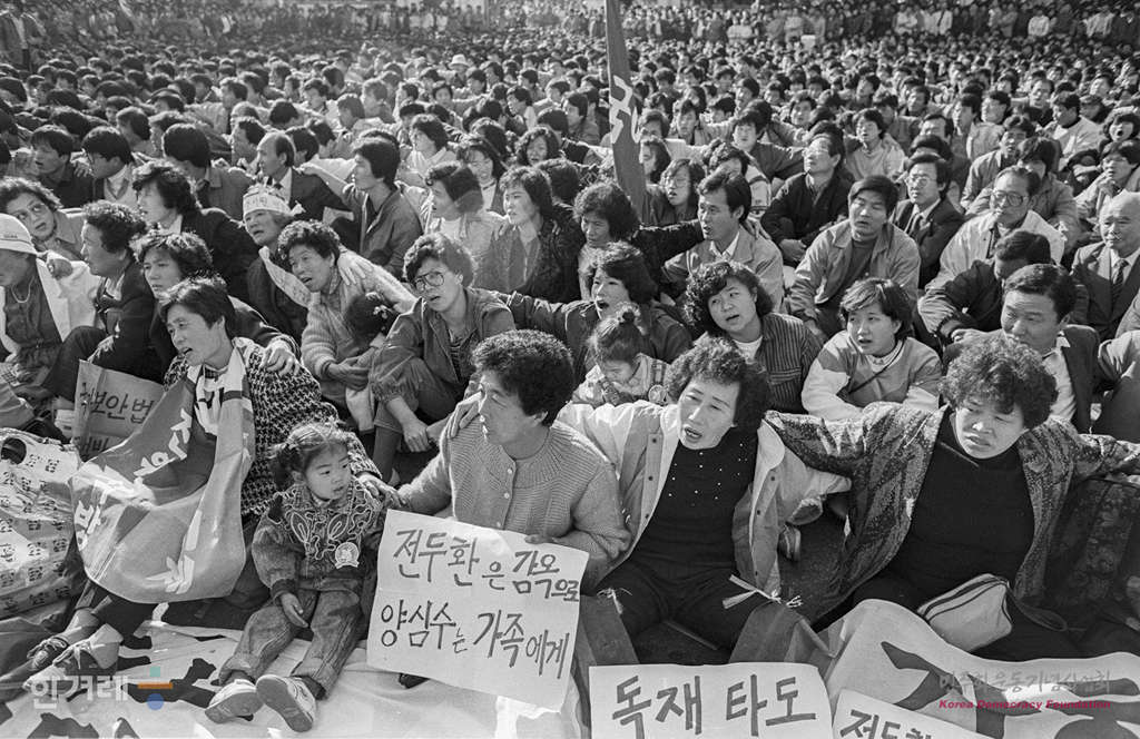 - 1988년 11월 5일 민통련을 비롯한 15개 재야단체로 구성된 광주학살 5공비리 주범 전두환 이순자 구속 처벌을 위한 투쟁본부 등 20개 사회단체 주최로 서울 대학로에서 열린 시민궐기대회는 지난해 대통령 선거 이후 최대 인파인 1만5천여 명의 시민 학생들이 참가했다.