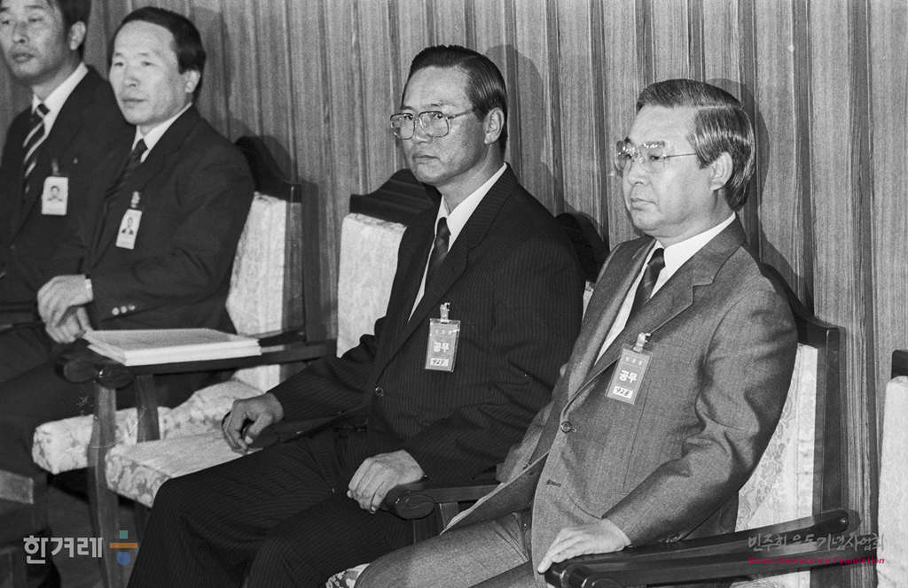 - 1988년 11월 7일 국회 제5공화국 비리조사 특위( 위원장 이기택 )는 일해재단 비리조사를 위한 2차 청문회를 열고 장세동( 전 청와대 경호실장, 안기부장)씨에 대한 증인신문을 하고 있다.