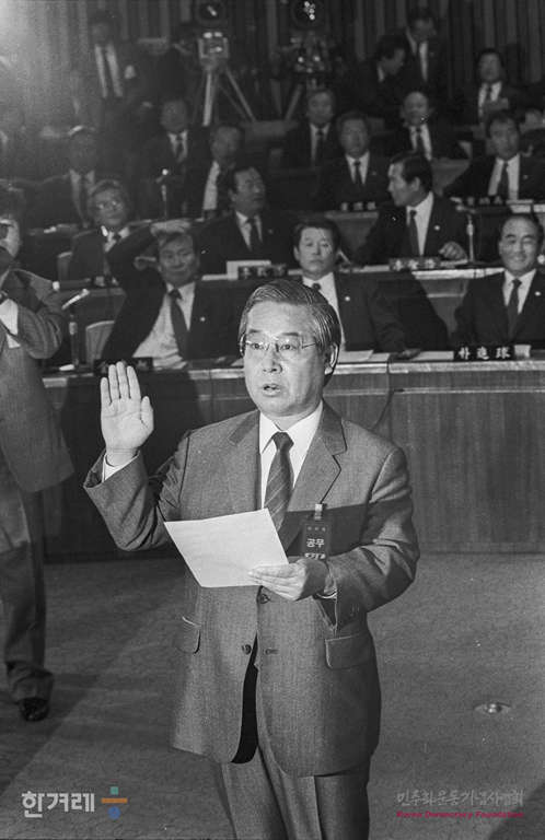 - 1988년 11월 7일 국회 제5공화국 비리조사 특위( 위원장 이기택 )는 일해재단 비리조사를 위한 2차 청문회를 열고 장세동( 전 청와대 경호실장, 안기부장)씨에 대한 증인신문을 하고 있다.