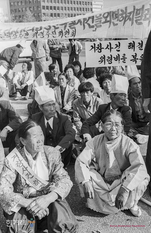 - 1988년 11월 7일 낮 12시40분께 서울 여의도 국회의사당앞에서 거창양민학살사건 유족 2백여명은 학살 희생자와 유족의 명예회복을 요구하며 농성을 벌이고 있다.