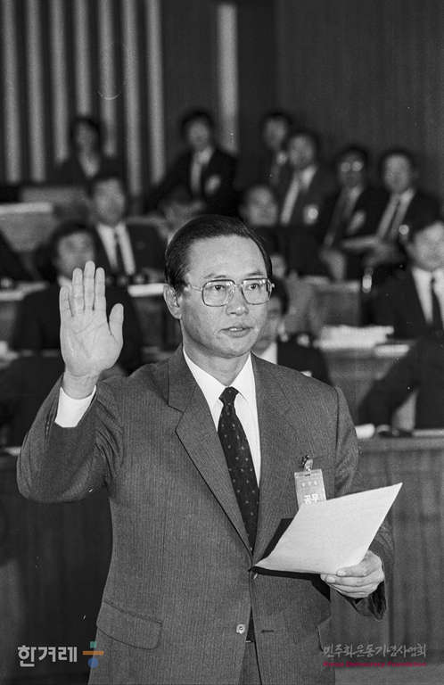 - 1988년 11월 8일 국회 5공비리조사 특위는 일해재단 비리관련 2차 청문회 이틀째를 속개하면서 증인으로 출석한 안현태 ( 전 청와대 경호실장 )씨가 증인선서를 하고 있다