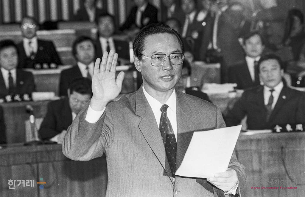 - 1988년 11월 8일 국회 5공비리조사 특위는 일해재단 비리관련 2차 청문회 이틀째를 속개하면서 증인으로 출석한 안현태 ( 전 청와대 경호실장 )씨가 증인선서를 하고 있다