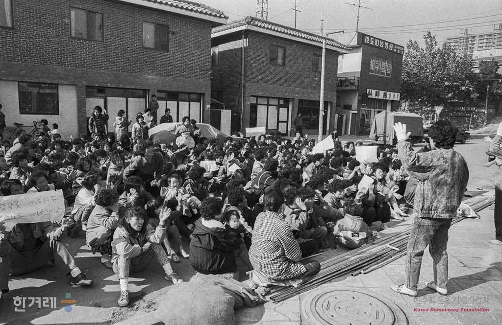 - 1988년 11월 8일 지난 7일 철거반들의 폭행으로 50여명의 부상자를 낸 서울 동작구 사동2동 재개발지구 세입자들이 평민당 동작을구 박실의원 사무실 앞에서 철거깡패 처벌과 임대주택 보장을 요구하며 농성을 벌이고 있다.