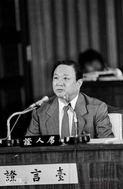 - 1988년 11월 9일 일해재단 2차청문회 마지막날이면서 사흘째인 국회 5공특위 일해재단청문회에서 회의를 속개하며 증인으로 출석한 장치혁 고려합섬 회장이 의원들의 질의에 증언을 하고 있다.