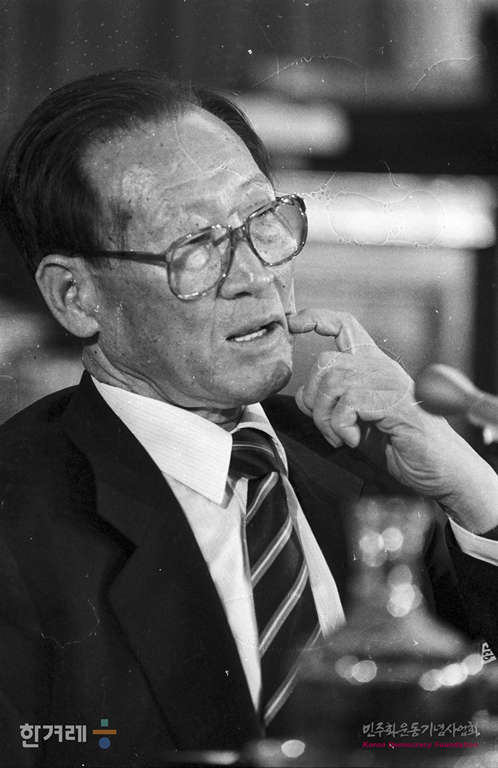 - 1988년 11월 9일 일해재단 2차청문회 마지막날이면서 사흘째인 국회 5공특위 일해재단청문회에서 회의를 속개하며 증인으로 출석한 정주영 현대그룹 명예회장이 의원들의 질의에 증언을 하고 있다.