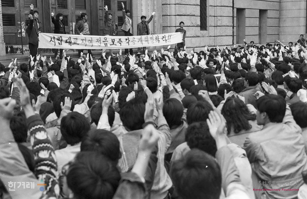 - 1988년 11월 9일 오후 3시 30분 서울시립대생 4백여명은 서울시청앞에서 서울시립대 이전 계획에 대한 해명을 요구하며 시위를 벌이고 있다.